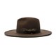 - 品牌经典型号FRONT-H 为基础 采用中折压痕欧式帽冠线条 11 厘米长檐设计 传统滚边处理强化轮廓 厚实硬挺西部规格羊毛毡面料 宽版丝带烫金印制品牌字样 黑、橄榄绿两款配色 帽围:38(59cm) 附 1900 年代中央车票主题纸标