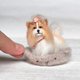 配件方面,我为它制作了镶有水钻并缀有坠饰的项圈,并钩织了一个柔软蓬松的小床,小床上还有狗狗的脸和耳朵造型。