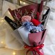 *内含:含2朵主花(1朵为永生玫瑰,1朵为手工花),其他花材以永生花及干燥花混搭设计。另附提袋、祝贺卡片(卡片随机挑选)