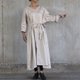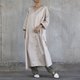 领口像折纸的线条一样明显地折叠成 V 形,宽松的和服袖子,和服中央的两根缝线突出了自然皱纹,洗涤后会变得更加明显。