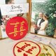 林此次挑了一个贴纸很少用的材质,雾面洒金红纸,配上囍字的手写字,加上烫金处理以及圆型全断切割,红金为最适合的搭配,具有完美质感又圆满的囍字就诞生啦!