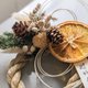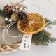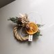 使用花材:不凋雪松、松果、乌臼、千日红、水晶草、干燥柳橙片