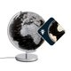 有吸引力的设计:LED 地球仪 STELLAR LIGHT(直径 30 厘米),带有照明地图影像。大陆为银色,海洋是黑色的。地球仪有英文标签,显示大陆、国家、海洋、地理区域、重要城市和山脉。