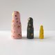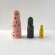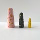 这是一组三件式、形状少见、稍微细长的俄罗斯娃娃。