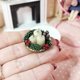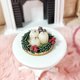 It is 100% handmade. All elements are made of polymer clay, the base is wood. The diameter of the composition is 3 cm ( 1.18 inches). Suitable for 1/12 scale doll houses, also can be used for 1/6 scale houses.