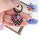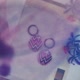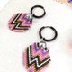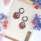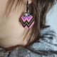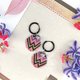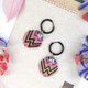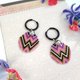 Round earrings are unusually attractive in their colors of pink, emphasized by black with a touch of silver and bronze.