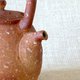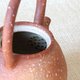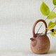 这种盛汤器皿是在陶轮上用含有长石的粗信乐粘土精心制作的。信乐烧特有的猩红色是使用气窑烧制而成的。由于是在高温下烧制的,黏土中嵌入的粗石会溶解并浮出表面。每块石的表面都经过手工抛光,达到光滑的表面,以便舒适地握在手中。壶内施有釉,并精心钻有用于滤茶的细孔。倒出非常方便,水流极佳。盖子也完美贴合。此倒酒器由于壶柄与壶身为一体,制作难度极高,是珍贵的艺术品,但产量却很少。