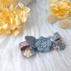配件:压布条碎花缎带、手工布花 发夹款:5cm有齿压嘴夹 饰品配戴注意事项~ 每个人的配戴方式与保养状况不同,使用的饰品保存寿命也会有所不同。 ▪于电脑与手机屏幕显示皆会有色差,故颜色以实际商品为主。