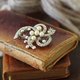 老又好古董珠宝 Vintage 银色珍珠小花莱茵石别针 B2134