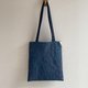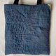 这是一款小巧的托特包,在珍贵的蓝染古布上,以蓝染线进行缝制。
