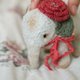 配有玻璃眼睛。颈部系有一朵手工编织的羊毛纱玫瑰。并以复古缎带绑扎。