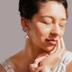 这款 Art Deco 耳环以薄片珍珠母贝制成,外层包覆透明光泽树脂,呈现细致柔亮的珠光效果,在光线下散发优雅光芒。耳钩采镀金设计,并镶嵌一颗小巧水滴形水晶,增添细致质感。