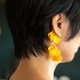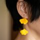 这是一个华丽的耳钩,上面挂着聚合物粘土制成的银杏叶。
