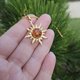夏日巨型琥珀太阳坠饰,烈焰太阳琥珀项链,干邑色,925 纯银 - 项链 - 宝石 咖啡色