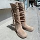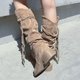 质感绒布搭配随性皱褶打造自然慵懒线条,侧边编绳绑带让整双鞋更有层次感与率性氛围。