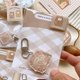 内含压克力吊饰3个(NT.90)、双面小卡5款(NT.30)、软绵绵的银雾幻梦花卉集邮册六代3厘米特油和纸胶带(NT.220)、软绵绵的花卉集邮册四代3厘米特油和纸胶带(NT.220)