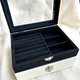 翻盖设计搭配透明玻璃,清楚看见饰品分类,一目了然。内部分隔设计能收纳耳环、戒指、项链等多样小物,保持桌面整齐有序。