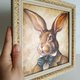 这幅以爱丽丝梦游仙境为灵感的手绘原创油画,为您的家增添一抹文学魔力。一只身着背心、手握怀表的迷人白兔,正准备踏上冒险之旅。这幅微型油画绘于纤维板上,并装裱在画框中,可为任何空间增添一抹亮色。