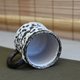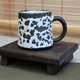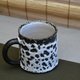 这只马克杯以 志野釉 为主要表现,经高温烧成后,白釉自然流动于黑色胎土之上,形成如“虫蛀”般的斑驳肌理。黑与白交错,仿佛雪覆岩壁,粗犷却又带有细腻的层次感。