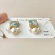 一块优雅的陶器,带有一丝绿叶图案,与三串淡水珍珠搭配在一起。
