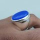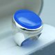 也门Aqeeq戒指 蓝色Aqeeq 蓝玛瑙戒指 银饰 深蓝色Aqeeq戒指 玛瑙