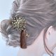 这款发饰结合了Tsumami Zaiku(日式捏捏花)工艺的花朵、蝴蝶吊饰与流苏,造型可爱又不失优雅。