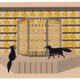 稲穂をくわえている黒狛狐のポストカード5枚セット。