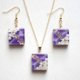 以深紫色为背景,点缀着花朵与珍珠,并饰以亮粉与白色线条,整体设计散发着高雅气息。