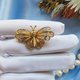 这款为意大利手工制纯银胸针,经典的编织纯银丝织造型的镂空花样非常美,此款只有蝴蝶斑点为银色其余都是金色~掐丝Filigree,是一种古老的金工技法而手工制作成立体形体,做工较细腻,也相当费时费工,虽然掐丝饰品是以葡萄牙较有名,但个人觉得意大利跟德国的掐丝饰品做的也很美~