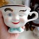 **美国中古董90年代立体陶瓷笑脸娃娃茶杯咖啡杯咖啡店家居品味摆设**