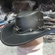 Alloy Metal Horned Bull Head Concho on Leather Hat Band.