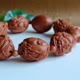 橄榄核雕:橄榄核雕是中国传统微雕艺术的瑰宝,以质地致密的橄榄果核为载体进行艺术创作。其历史可追溯至明清时期,早在《核舟记》中便有“明有奇巧人曰王叔远,能以径寸之木为宫室、器皿、人物”的记载,而橄榄核雕正是延续了这种巧夺天工的技艺传承。珍贵于其创作过程的极致艰辛:核材质地坚硬且形态不规则,核壁厚度有限,雕刻时需依形就势,刀刀精准,稍有不慎便会前功尽弃。加之每颗橄榄核的纹理结构独一无二,使得每件作品都是世間孤品。它在把玩过程中会随着岁月沉淀逐渐形成温润如玉的包浆,颜色由浅入深呈现琥珀光泽,这种与人共鸣的生命力正是机雕产品无法比拟的。橄榄核本身含有天然抗氧化成分,长期接触可安神醒脑,而在指尖摩挲的过程中更能刺激手部穴位,促进血液循环。它即是凝聚着匠人心血与时光温度的艺术品,也是承载祥瑞寓意的护身雅物,更是值得世代珍藏的文化传承。