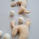 half-wool felt (USA, Spain), hypoallergenic felt (100% polyester, Korea), hypoallergenic stuffing (100% polyester)