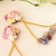 单根绣花线织成的一束小花,主打甜美成熟的粉色。 除了蕾丝花边的设计,链条连接的紫水晶天然石摇曳生姿,俏皮可爱。