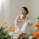 她轻轻转身,耳畔的花影也跟着摇曳。
