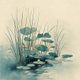 《池畔无声》是一幅以静谧为语言的艺术作品。画面以极简笔法描绘水畔的倒影与浮萍,柔和的蓝灰色调随着光线渐次淡去,仿佛时间在此刻静止。艺术家以轻盈的笔触捕捉自然中最细微的气息,透过层层留白,构筑出一种“看得见空气”的诗意。