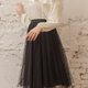 撞色内光泽菲莉丝短纱裙   黑 - 裙子 - 聚酯纤维 黑色