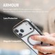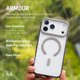 ARMOUR 手机壳的主要特点是其透明设计,允许 iPhone 的原始颜色和设计透出,保持设备的美观。