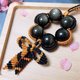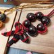 圆珠:加工玛瑙(蓝沁龙鳞裂纹珠)、金曜石、红石榴石