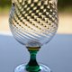 最近、台のついたグラスの新作をいくつか作っています。 その一つ、モールの捻ったラインが綺麗で 新色のブルーグリーンがちょっと、 大人な雰囲気のあるワイングラスです。 容量は程々の160〜170mlくらいです。 W73mm×H123mm