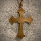 正面纹饰繁丽,背面则保留素雅的黄铜质感,展现出宗教首饰既庄严又典雅的特质。这类十字架在当时常作为教堂朝圣信物,承载深厚的信仰与工艺价值。