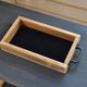 我们在简约的咖啡厅托盘上铺设了高级绒布,并加上了黑色的铁制把手。