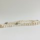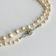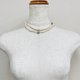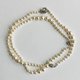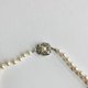 此款为日本制造的玻璃珍珠项链,以贝壳素材为原珠,涂上原创色彩的珍珠涂料,经过多层次的堆叠涂布而成。与莱茵石零件结合,制成多个渐层设计并串联完成。珍珠之间皆以细腻的单独结节处理,完成全结式工法。珍珠的颜色为带有细致质感与柔和光泽的米白色。是带有淡淡柔和米色调的色彩。珍珠尺寸约为直径5mm至9mm的珠子,全长约78cm,可轻松佩戴于衣物外。扣环采用经典设计的插入式。
