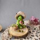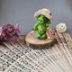 每条腿分别钩编,然后用线完成。 "毛皮"被刷得蓬松,形状像一把剪刀。 牛大傻软! 它与5个方向的线程捆绑在一起。 这意味着它的头部和四肢是可移动的,它转动头部并采取不同的姿势。