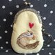 浅黄色棉质手绣零钱包,绣有可爱的小松鼠与红色爱心,搭配复古金属开口。