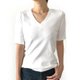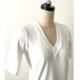 少し深めのVネックは、天巾(衿ぐりの横巾)をなるべく小さくして、衿ぐりがタテ長に見えるようにしていますので、鎖骨から首のラインをとてもきれいに見せてくれます。