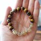 10mm天然虎眼石与水晶之王钛晶结合的开运手串,不仅是一件独特的配饰,更是一种充满能量的生活方式选择。虎眼石是大自然赐予的珍贵宝石,以其清晰的光泽和独特的条纹闻名,象征着勇气和自信。佩戴虎眼石不仅能稳定情绪,还能强化内心的安全感与自我信念,让您在生活的每一刻都感受到力量的加持。 这串手链搭配钛晶,素有“水晶之王”之称。钛晶的独特之处在于它包裹着金色针状或片状的金红石发丝,这正是其充满能量的来源。传说中,钛晶能带来财运、增进人际关系,并对健康的维持有相当的助益。因此,无论是提升事业运势或是拉近与朋友的距离,这款手串都能为您提供强大的支持。 手串的10mm大颗尺寸,让整个设计充满气势,此款手串设计中性,男士或是女性都能轻松佩戴,无论是休闲还是正式场合,皆能展现出不凡的品味与气质。