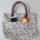 白底上绘制着小巧的草莓、黑莓、覆盆子等莓果, 让您仿佛漫步在花园之中。🍓🍓🍀 为了在可爱中带点成熟的气息,提把特意选用了棕色的合成皮革。 内侧有一个口袋。 外侧有一个拉链口袋。 **注意事项** **请注意,笔记本、钱包等小物仅为示意,商品仅为手提袋本身。** ▼材质、规格▼ 采用铺有衬布的斜纹帆布。 虽然提把较有重量,包身会有些许垂坠感,但仍可保持站立。 内里使用平纹棉布,厚度类似于衬衫或罩衫。 拉链口袋的布料也与内里布料相同。 提把为合成皮革。 ▼尺寸▼ 宽度 (上缘)32cm,宽度 (下缘)24.5cm 高度 23cm,深度 8cm 提把长度 32cm 内袋 宽度 18cm,深度 13cm 拉链口袋 使用 20cm 拉链 深度 14cm 重量 135g **注意事项** **照片尽量呈现商品实品颜色,但因各人电脑或手机屏幕显示设定不同,可能会有色差,敬请见谅。**