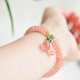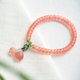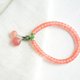 搭配同色系南红冰飘玛瑙雕刻莲花珠和小茶壶,小茶壶雕刻得非常饱满精致,造型生动可爱,搭配手工绕线连接,手串搭配了一颗精品碧玉雕刻竹节珠,丰富色调