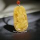 商品赏析:琥珀温润如光,蜜蜡静若禅心。此件取天然留皮飘花蜜蜡原矿,雕刻文殊菩萨端坐莲台,眉目慈慧、剑指真理。乳黄底色中飘散白花云雾,如智光流转,静中藏威。